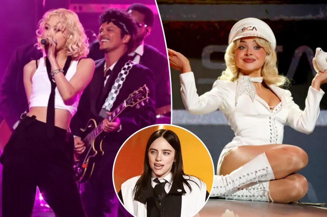 Algunos productores inteligentes eligieron la canción perfecta para comenzar la noche: la interpretación ruidosa y palpitante de Bruno Mars y Rose del nominado a Grabación del Año, “APT”.
