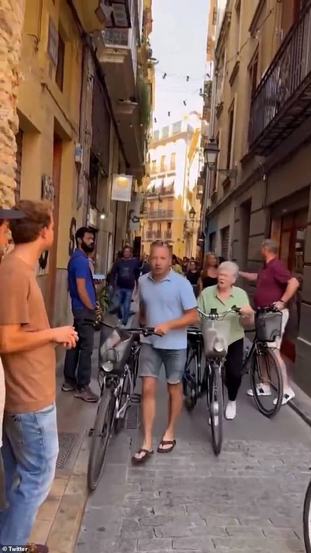 Este es el momento tenso en el que los lugareños españoles rodearon a los turistas y les gritaron a los ciclistas que “se fueran” después de que se desviaran por el sendero.