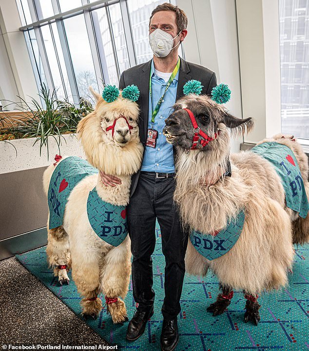 Un local @carel_v_w publicó una foto de Therapy Llamus ubicada en el aeropuerto internacional de Portland donde aterrizaría el ejército.