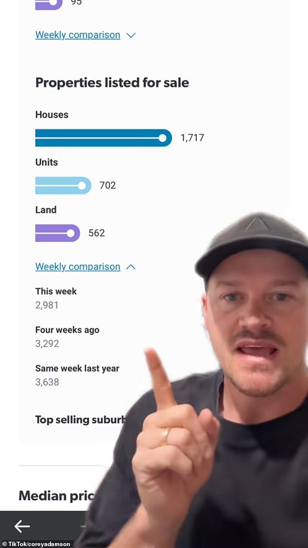 El agente inmobiliario de Perth, Corey Adamson, dice que el número de propiedades en venta en Perth está menos registrada