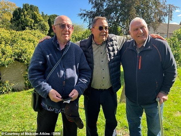 Malcolm Atkins, Rand Smith e Ian Brandon están cumpliendo con sus privilegios en el cementerio de San Pedro en Ronds, Northhampones.
