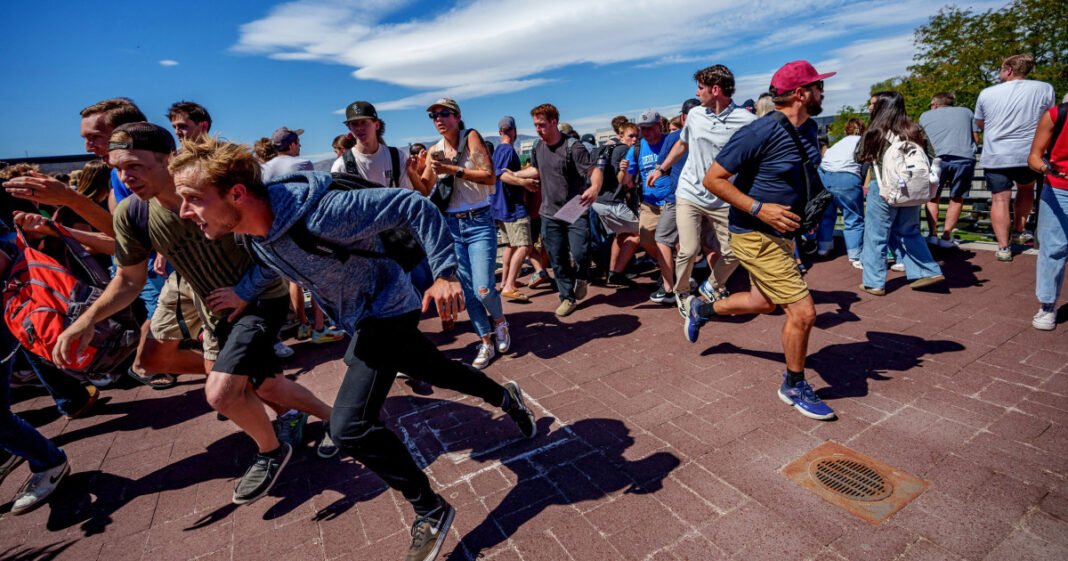 La gente corrió después de que Kirk disparó en la Universidad de Utah Valley.A través de Trent Nelson / The Saltlake Tribune Reuters