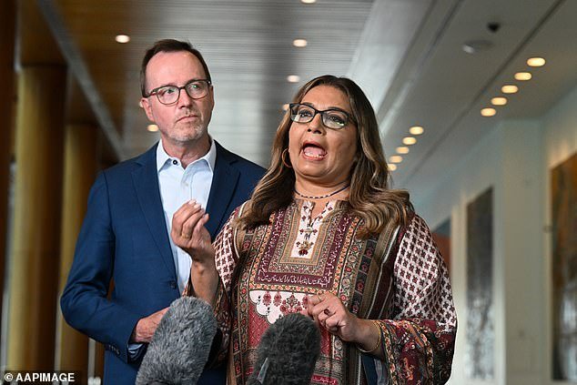 Los Verdes han rechazado las leyes de discurso de odio propuestas por Anthony Albanese en su forma actual y se negarán a acelerar su aprobación en el parlamento la próxima semana. Arriba, senadora Mehreen Faruqi y David Shoebridge