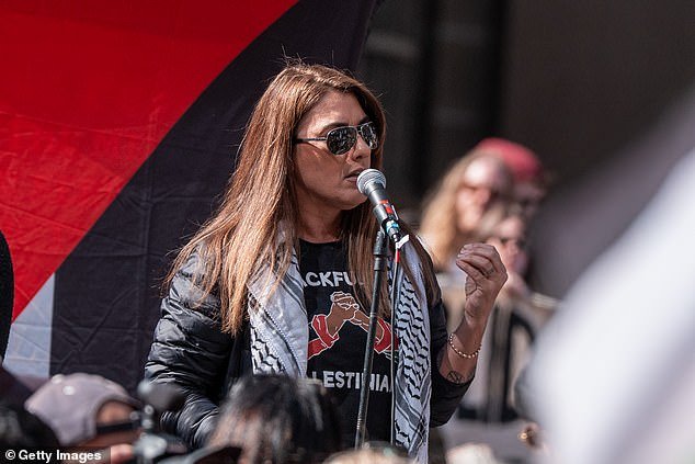 La miembro del Senado Lydia Thorpe amenazó con “nutrir” al Parlamento durante las protestas de los partidarios palestinos en todo el país. Su foto es cuando habla con los manifestantes en Melbourne en agosto.
