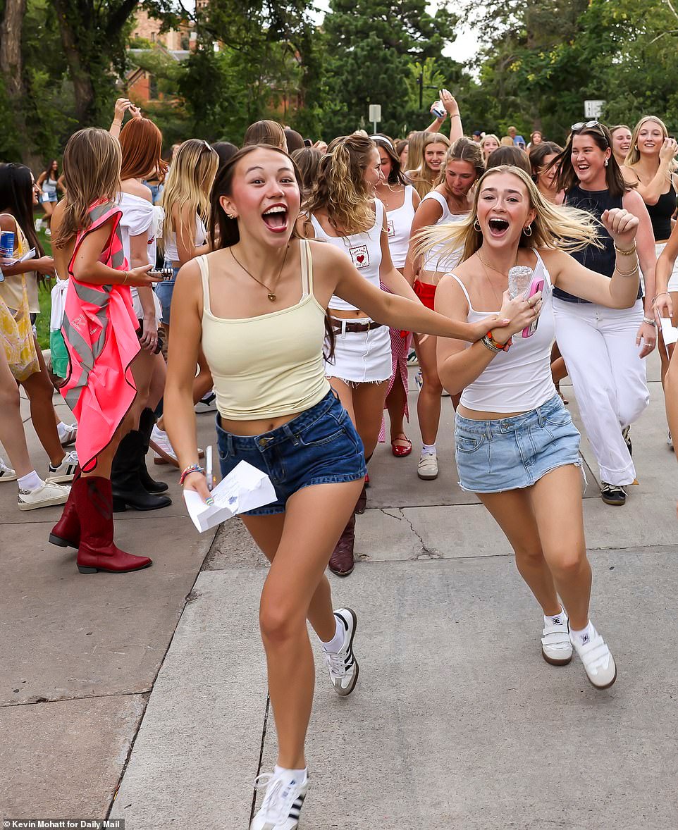 Haciendo en las faldas solo planeando sus muslos, con sus corazones, 1.500 niña nueva reunida el lunes para esperar una preocupación en el quad original de Colorado Boulder.