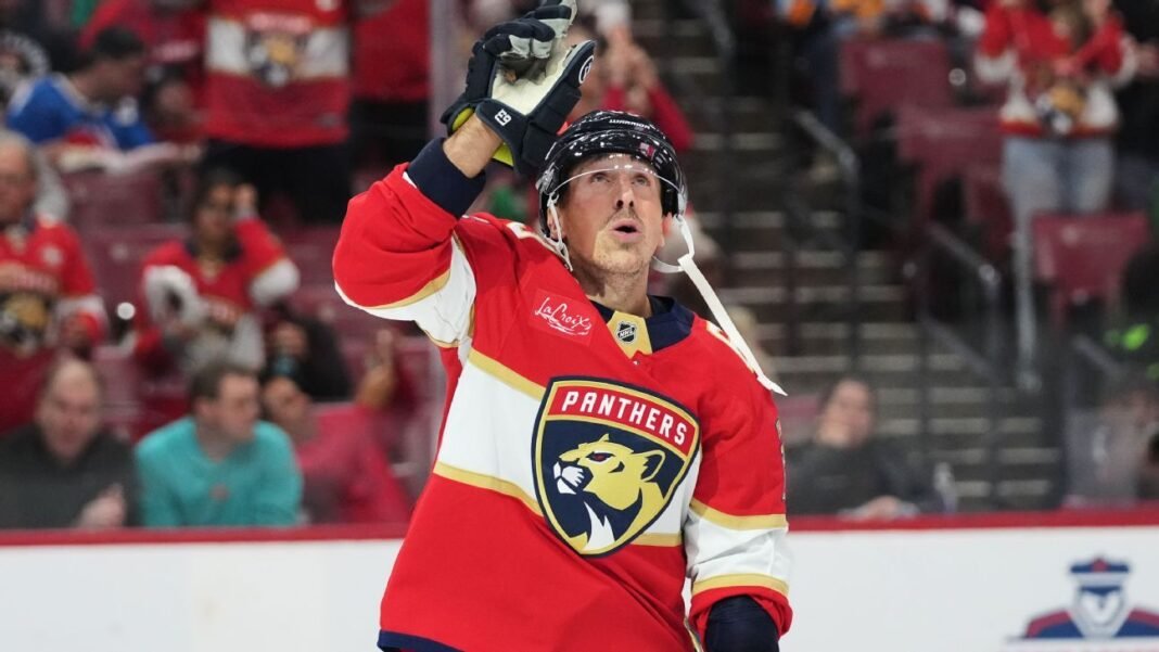 Sunrise, Fla. — Brad Marchand puso el disco en el fondo de la red para los Florida Panthers el sábado por la noche, luego levantó los dedos en el aire y miró al cielo.