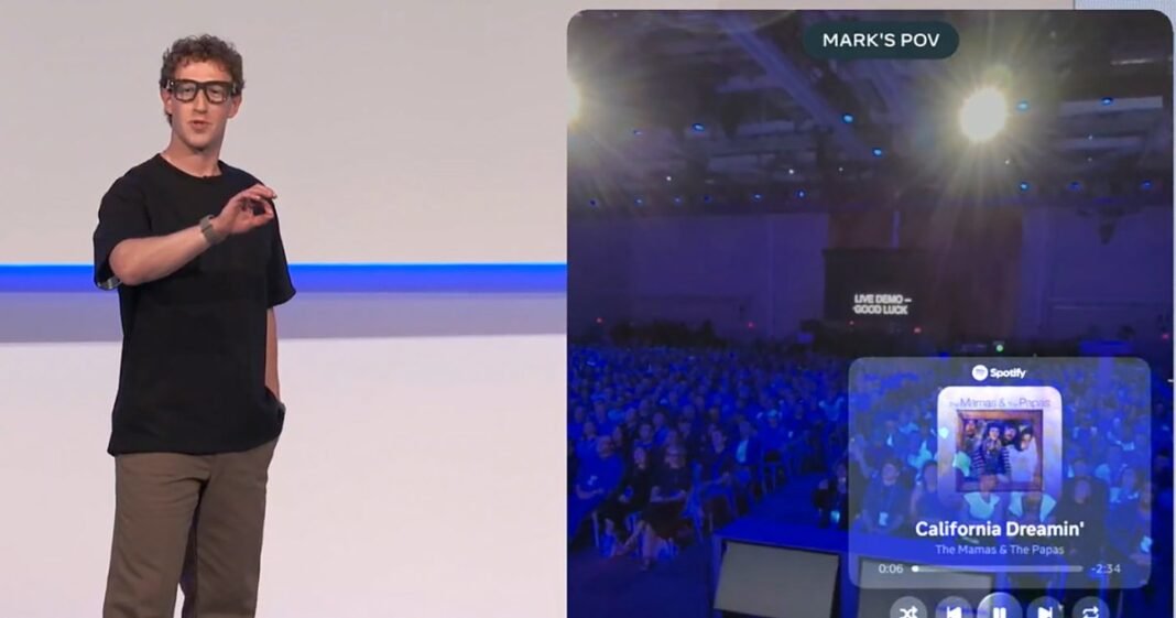 Zuckerberg también mostró la cantidad de música que estaba tocando y solía deslizar a través de las fotos, usando el combo de muñeca O-Glass, que estaba viendo a través de gafas inteligentes. Trató de aceptar una llamada telefónica a través de un gesto de la mano, pero falló y culpó a la conferencia WiFi.