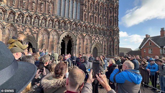 Otras personas afuera de la Catedral de Lichfield le dijeron al que interrumpía que “se callara” mientras el Rey se abría paso entre la multitud, saludaba a los fanáticos y causaba caos.