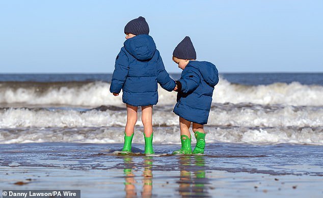 Dos niños jugaban en el mar en un día frío en Scarborough durante el semestre de octubre del año pasado.