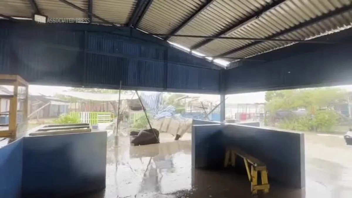 Melissa es una tormenta de categoría 5 con una velocidad continua de viento de 185 mph (295 kph). Se esperaba que atravesara la isla en diagonal, entrando en la parroquia de St. Elizabeth en el sur y partiendo alrededor de la parroquia de St. Ann en el norte. (Aplicación de vídeo: Matías Delacroix)