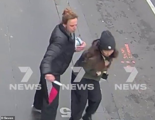 El impactante momento en que una mujer fue apuñalada por un extraño mientras se dirigía al trabajo ha sido capturado en imágenes de CCTV.