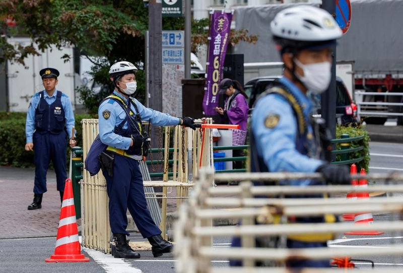 Miles de policías vigilan Tokio. Un hombre que portaba cuchillos fue arrestado frente a la embajada de Estados Unidos el viernes y se está organizando una protesta contra Trump en la ciudad de Shinjuku.