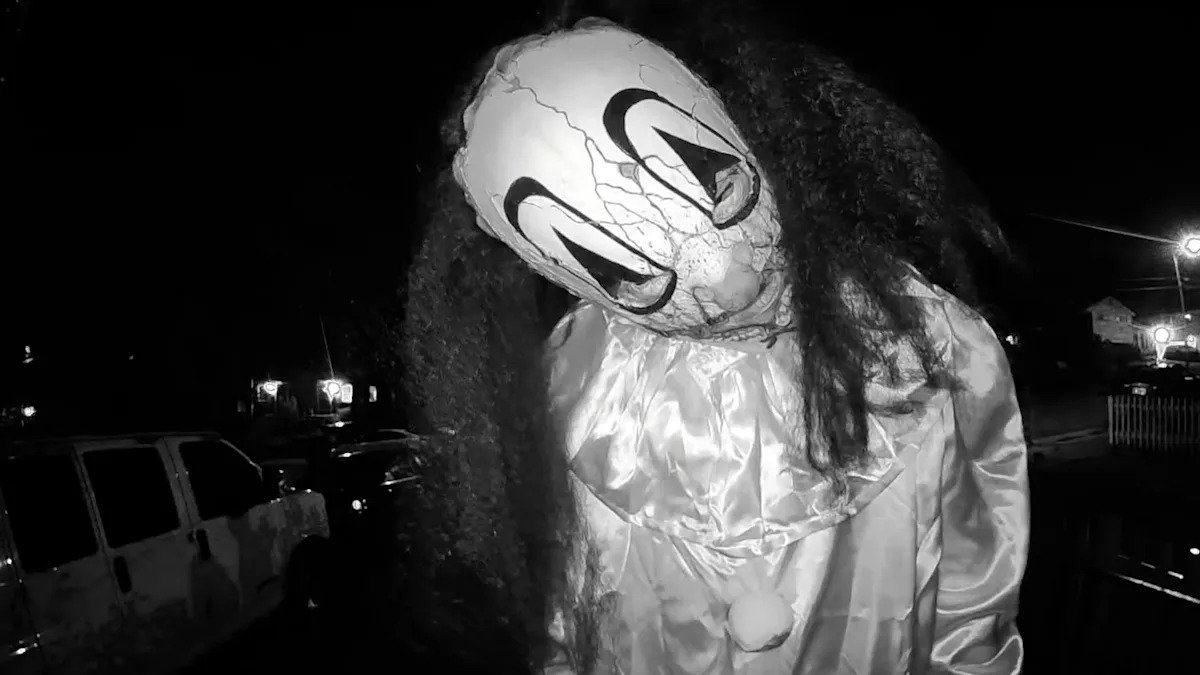 Un video de enfriamiento del timbre de la puerta muestra a un trío con disfraces de Halloween afuera de la casa, gritando amenazas.