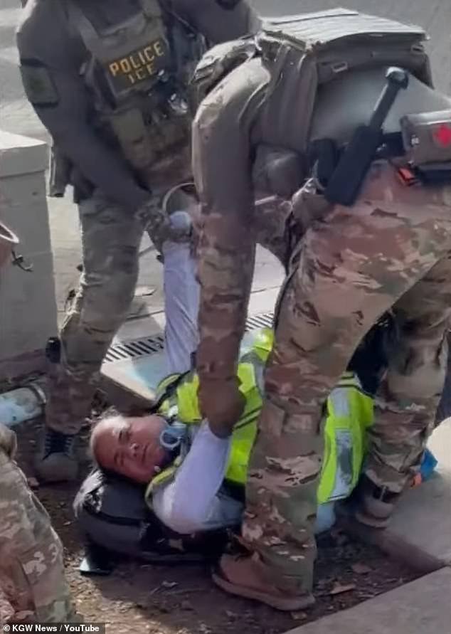 Dirigiéndose al incidente a KOIN, el Departamento de Seguridad Nacional dijo: “Este alborotador fue arrestado porque violó órdenes policiales de permanecer fuera de propiedad federal, obstruyó la aplicación de la ley y continuó bloqueando las entradas para que los vehículos no pudieran entrar o salir de las instalaciones de ICE”.