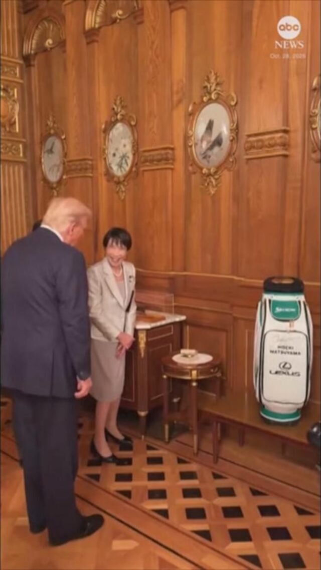 El Primer Ministro de Japón, Sanae Takaichi, entregó al Presidente Trump el palo del difunto Primer Ministro japonés Shinzo Abe durante su visita a Tokio.