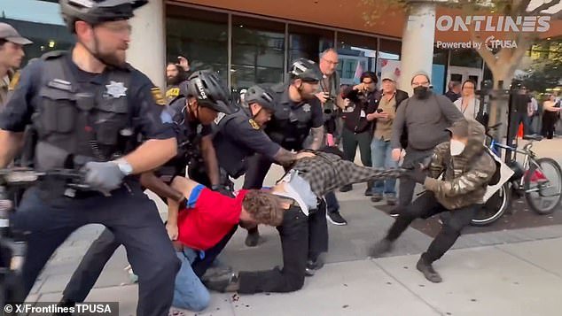 Los agentes de policía de Berkeley finalmente separaron a los dos fuera del evento de Turning Point USA.