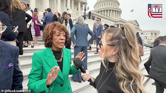 La reportera de la red de televisión Lyddel de derecha, Alison Steinberg, le preguntó al demócrata de California Maxin Water que su partido prefería las necesidades de los inmigrantes ilegales el 30 de septiembre de 2025.