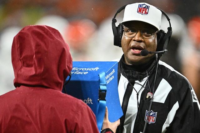 El árbitro Ron Torbert y otros funcionarios de la NFL recibirán más ayuda del stand de repetición, a partir de la temporada regular 2025. (Jason Miller/Getty Fig.)