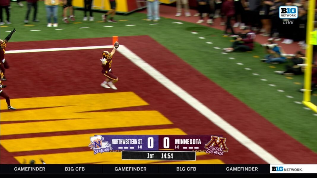 Minnesota Goofers John Nestr tomó un pase y regresó 29 yardas para los monstruos estatales del Norte.