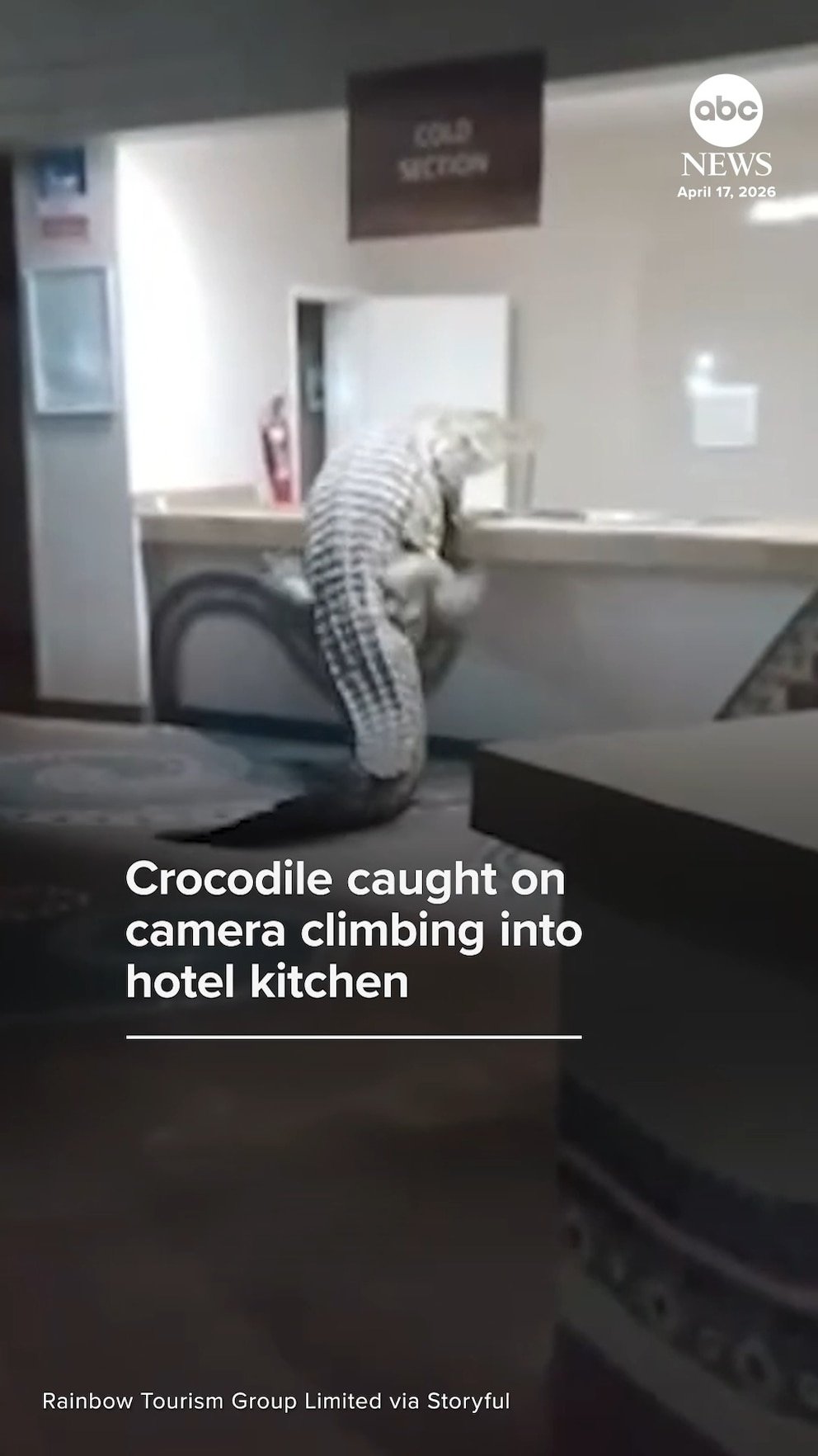 MIRAR: Cocodrilo captado por una cámara trepando a la cocina de un hotel en Zimbabwe