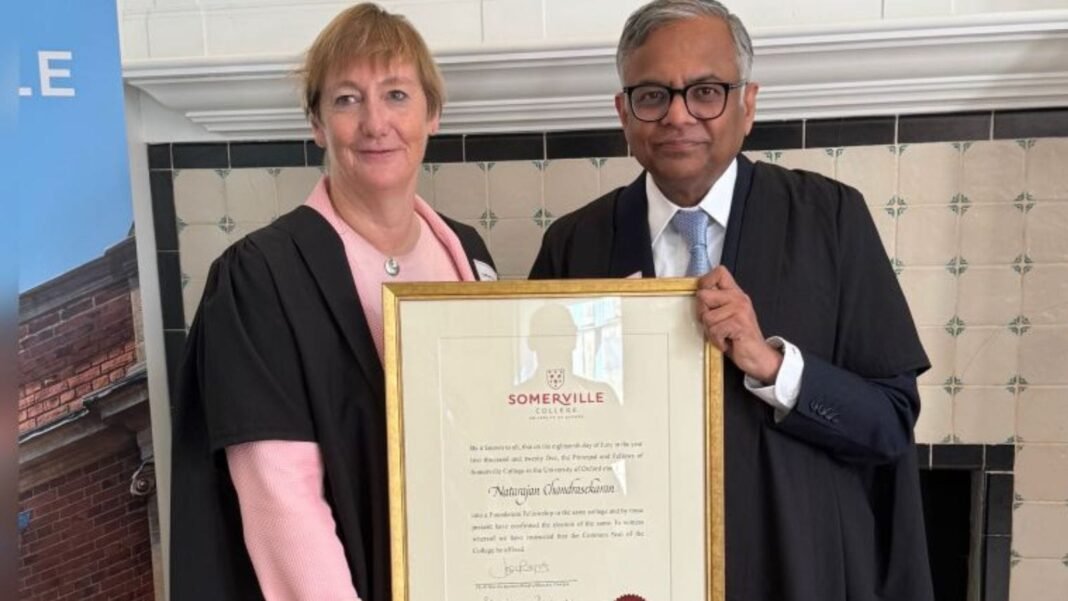 Somarville College de Oxford ha anunciado la elección del presidente comercial del presidente de los Tata Sons, Natarajan Chandrashkaran, como miembro de la Fundación de Somarville College.
