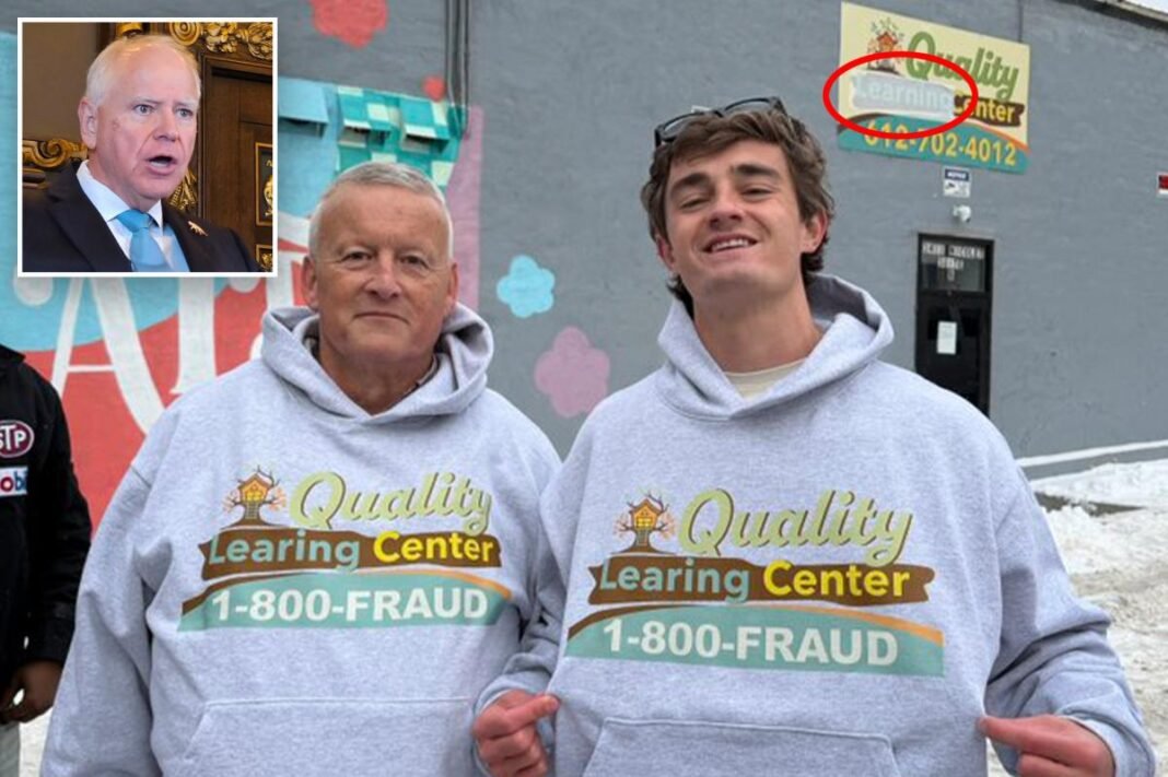 Las sudaderas de ambos hombres también decían “Centro de aprendizaje de calidad”, reflejando carteles vinculados al sitio de Minneapolis para las acusaciones de fraude.