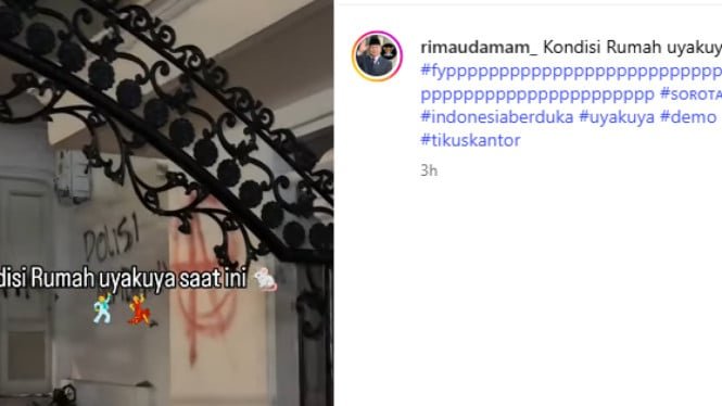El sábado por la noche, el 30 de agosto de 2025, se vio un video que muestra la residencia de artistas y miembros del DPR en el área de East Yakarta.