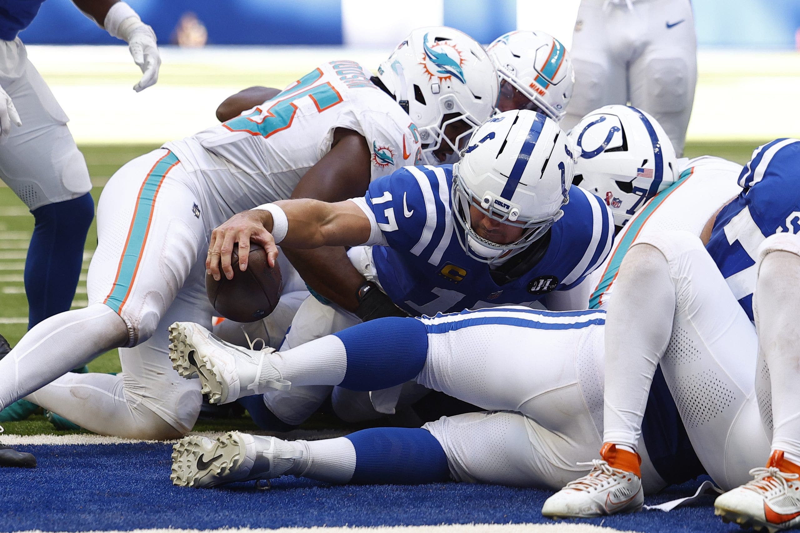 Mucha deuda: 29 de 22 es 272 yardas y terminó para un TD. Se han agregado veintidós yardas por tierra con siete autos con un par de puntajes por tierra en una victoria por 3-1 sobre los Dolphins.
