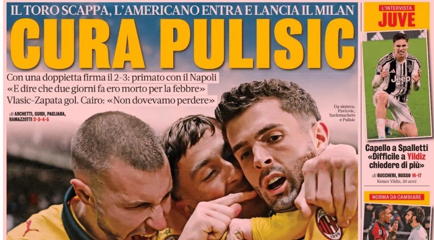 El penal de Vlasic y el primer gol de Zapata en 429 días no fueron suficientes para evitar una tercera derrota consecutiva y una nueva decepción para la afición. Baroni ha caído al puesto 16. El Milán se recuperó de un comienzo impactante y de la lesión de Leo. American Brace (39° de fiebre) completa la remontada iniciada por Rabiot. El Nápoles aguantó.