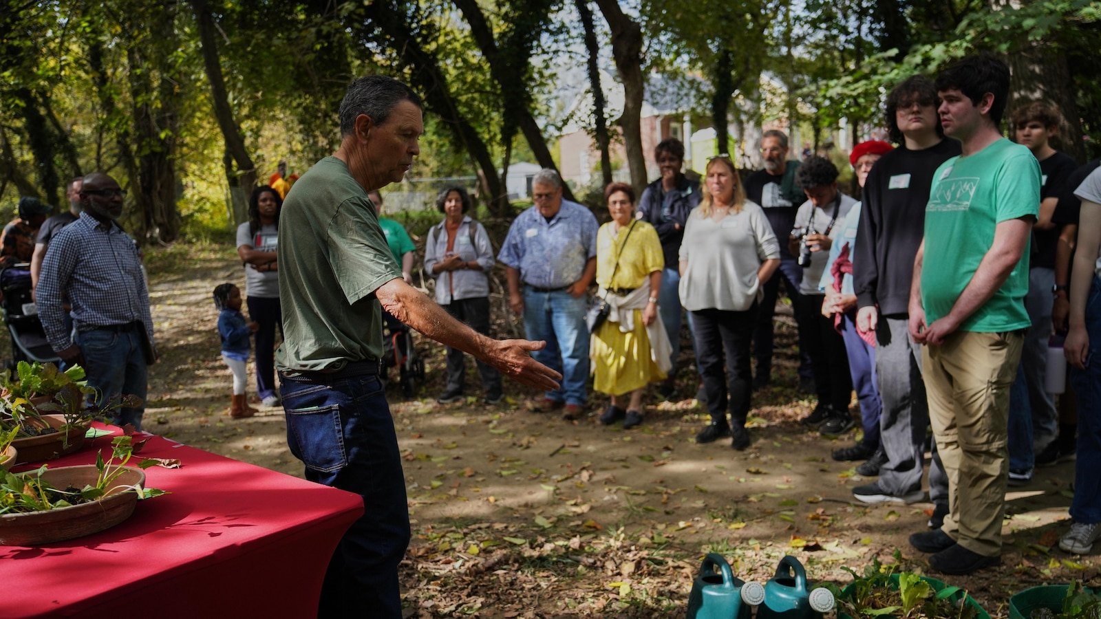 Antes de la fiesta vecinal, decenas de visitantes se reunieron para realizar un recorrido a pie. Ulysses Archie describe cómo esta pequeña cuadra de Collins Avenue se convirtió en un centro para la agricultura de traspatio, la limpieza ambiental y la conexión vecinal.