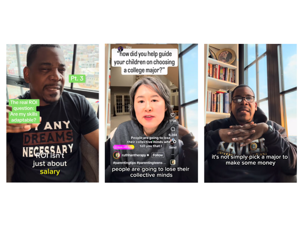 Y así comenzó A. TikTok controvertido Eso se volvió viral a finales de enero. La autora, una terapeuta llamada Ruth Hahn, afirmó que la universidad era una “escuela de oficios administrativos” y dijo que no estaba dispuesta a pagar por un título que no prepararía a sus hijos para el éxito. (En los comentarios del video, señaló que los cuatro campos permitidos eran enfermería, contabilidad, ingeniería o ciencias de la computación, aunque dijo que las ciencias de la computación no estarían en la cima debido a la inteligencia artificial).