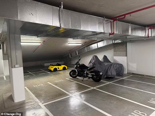 Una madre feroz está tratando de retirar la prohibición de usar espacio de estacionamiento en su complejo de apartamentos boutique para almacenar el auto de viaje de su hijo.