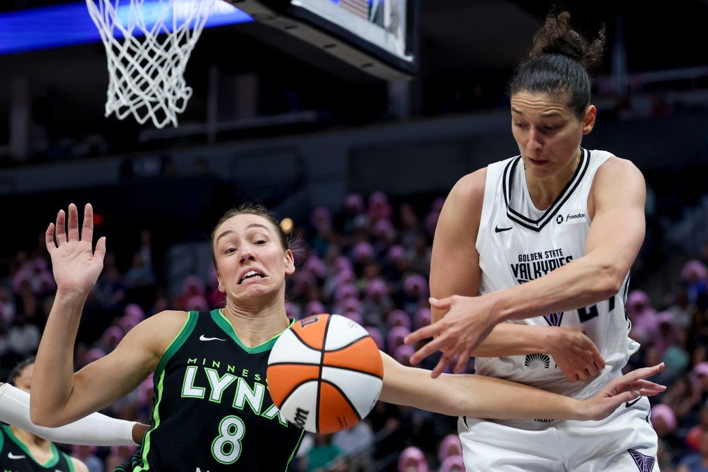 Nephisa Callia de Minnesota Lingx #24 en San Francisco, California, trató de dar un salto en el último cuarto contra Illiona Rupert #12 de Golden State Valkiriz en el Centro Ches el 6 de septiembre de 2025 en California. Nota para el usuario: el usuario reconoce y acepta que el usuario está descargando los términos y condiciones del acuerdo de licencia de imagen de Getty descargando esta fotografía y utilizando esta fotografía. (Foto de Cavin Mistry/Getty Fig.)