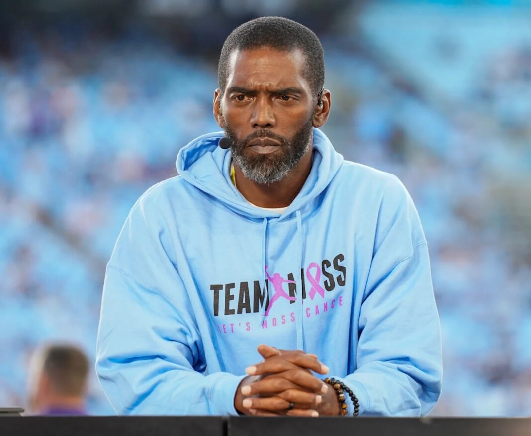 El receptor del Salón de la Fama y el analista de ESPN, Randy Moss, jugaron la campana el sábado y celebró su tratamiento contra el cáncer en el Instituto de Cáncer Levine de Atrium Health en Carolina del Norte.
