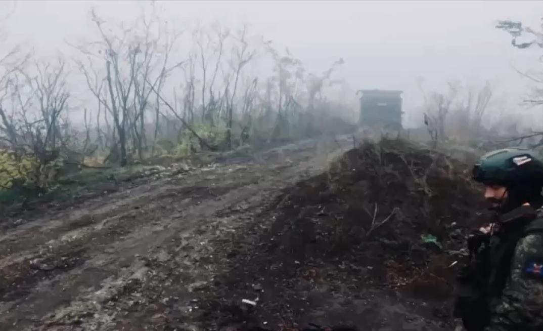 Captura de imagen de un vídeo publicado en las redes sociales que muestra a las fuerzas rusas utilizando la niebla para entrar en Pokrovsk el 10 de noviembre de 2025.