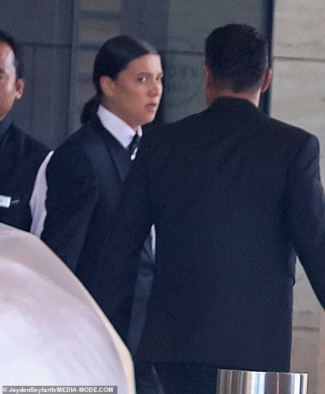 El delantero de Matildas, de 32 años, fue visto saliendo del Hotel Crown Towers antes de la ceremonia con un esmoquin negro, completo con un boutonniere blanco.