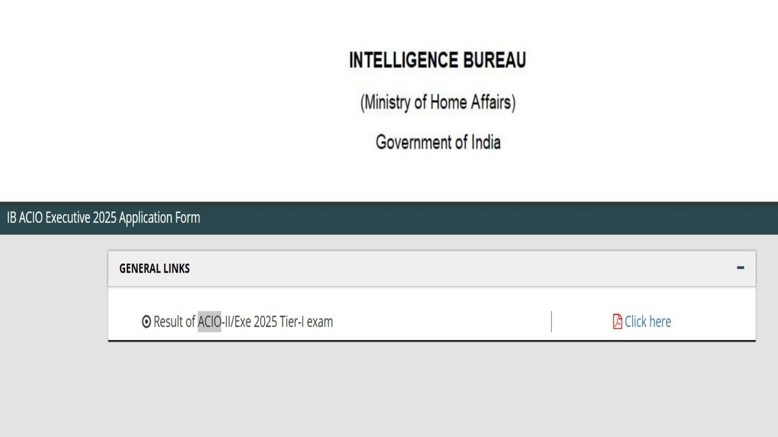 La prueba escrita/por computadora (CBT) se administró entre el 16 y el 18 de septiembre de 2025 en varios centros de todo el país. Según la notificación oficial, los candidatos cuyos números se han publicado en la lista de méritos han sido preseleccionados para el examen IB ACIO Tier-II, que es la siguiente etapa del proceso de selección.