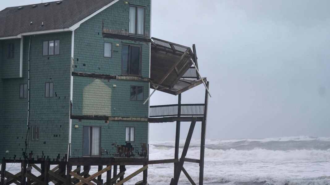 Las olas fueron violentas en la ciudad de Bookston, en la isla Hatarus, donde varias casas frente a la playa han caído al agua en las últimas semanas. El domingo una casa estaba perdiendo sus pilotes y apareció cerca del derrumbe.
