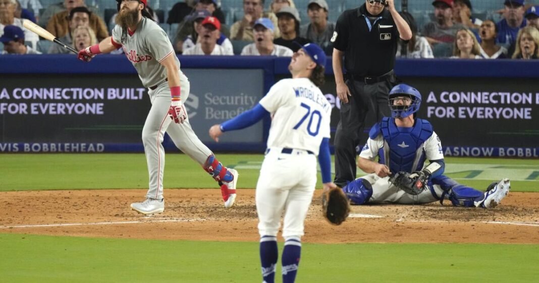 Tan pronto como termina, los rellenos toman la delantera con seis carreras. Y aunque Dodzers luchará para regresar al marcador en Ashtami, Bulpen se desglosa nuevamente en Navami, cuando Blake Trainson Filis finalmente lanzó un jonrón decidido de tres carreras y dos out a Rafael Marchon 9-6 victoriasEl