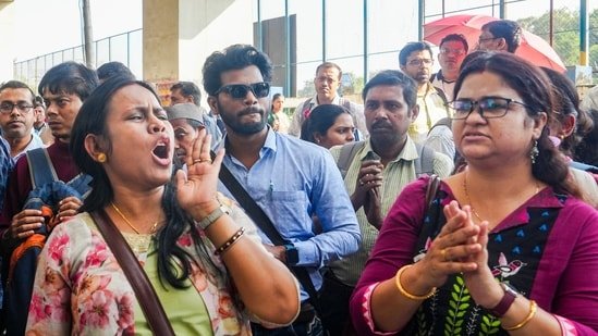 Miles de nuevos aspirantes a la SSC de las clases 11 y 12 marcharon desde la estación de Sealdah en el norte de Calcuta, rompiendo varias barricadas policiales y chocando con personal uniformado para llegar a la zona de Esplanade en el centro de Calcuta, su destino.
