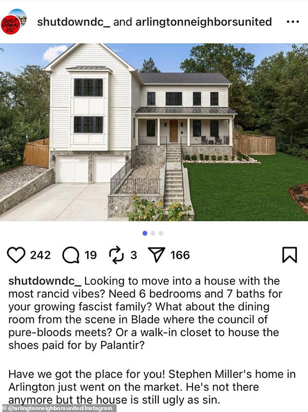El subjefe de gabinete de la Casa Blanca y el llamado ‘arquitecto de inmigración’ Stephen Miller está poniendo a la venta su casa en Arlington después de haber sido retenida por activistas.