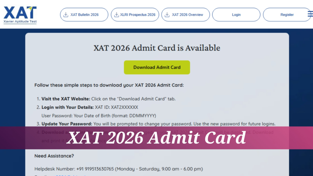 La tarjeta de admisión para Xavier Aptitude Test (XAT) 2026 se publicó y está disponible para descargar en el sitio web oficial en xatonline.in. Los candidatos que hayan completado el proceso de registro y estén programados para presentarse al CAT 2026 el próximo mes pueden acceder a sus boletos iniciando sesión con su ID y contraseña de XAT.