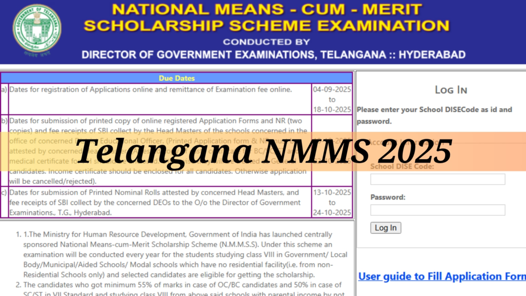 Fecha límite extendida para Telangana NMMS 2025-26: La Dirección de Exámenes Estatales de Telangana ha extendido la fecha límite de inscripción para el examen del Programa Nacional de Becas (NMMSS) 2025-26.