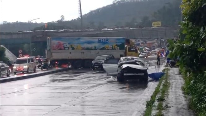 Semarang, VIVA – Un terrible accidente ocurrió el lunes 17 de noviembre de 2025 en la intersección de salida de peaje de Bawen, Semarang Regency, Java Central. El camión que circulaba a toda velocidad desde la dirección de Semarang y se sospechaba que había perdido el control debido a una falla en los frenos, chocando contra cuatro autos que viajaban en la dirección opuesta.