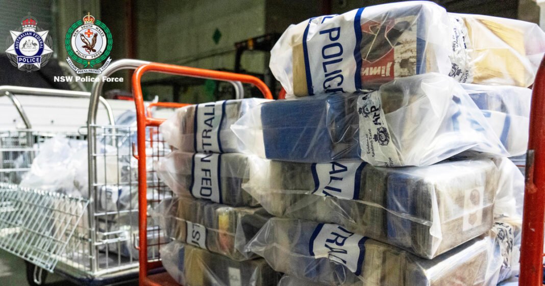 La parte trasera de la pared era un bloque 506 de cocaína que pesaba 1 kg (2.2 libras) de más de 1,115 libras. La Policía Federal de Australia (AFP) dijo el martes que una carretera que valía una carretera valía más de 164 dólares australianos ($ 106 millones) Publicación de noticias conjuntas Incluida la fuerza policial de Nueva Gales del Sur.