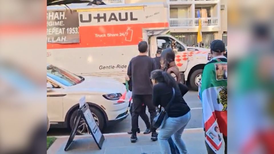 U-Haul atraviesa una multitud de manifestantes contra el procedimiento en Los Ángeles