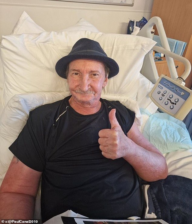 Redbridge, el líder del Partido Conservador en la sala del puente, fue a X, para compartir la foto del actor con una sonrisa en su rostro y pulgares en la cama del hospital.