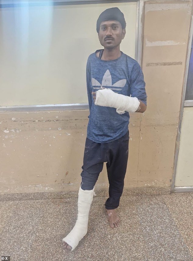 Nuevas imágenes lo muestran caminando esposado y bajo vigilancia policial, con heridas que la cadena india CNN-News18 describe como un brazo y una pierna rotos.