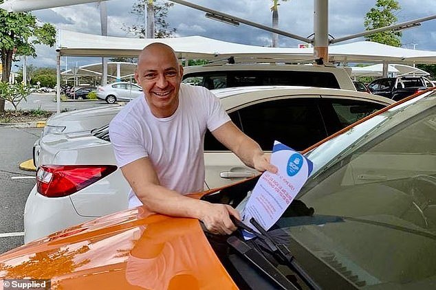 Matbouli aparece en la foto repartiendo comida como parte de una campaña benéfica con el primer ministro de Queensland, David Crisafulli.