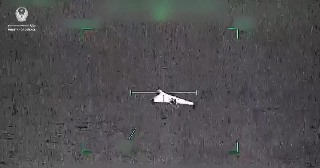 Un vídeo difundido por Emiratos Árabes Unidos muestra la destrucción de un dron iraní